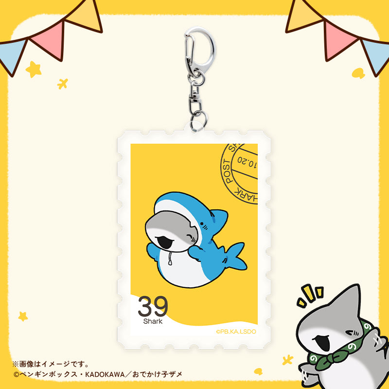 『おでかけ子ザメ』の切手型キーホルダー 子ザメちゃん きぐるみが登場!