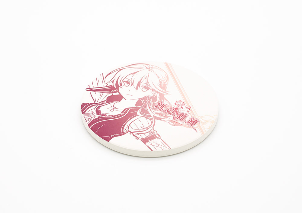 実用性も抜群の白雲石コースター。エマのイメージカラーで、印象的なデザインに仕上げています。