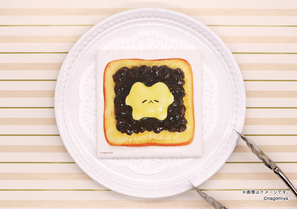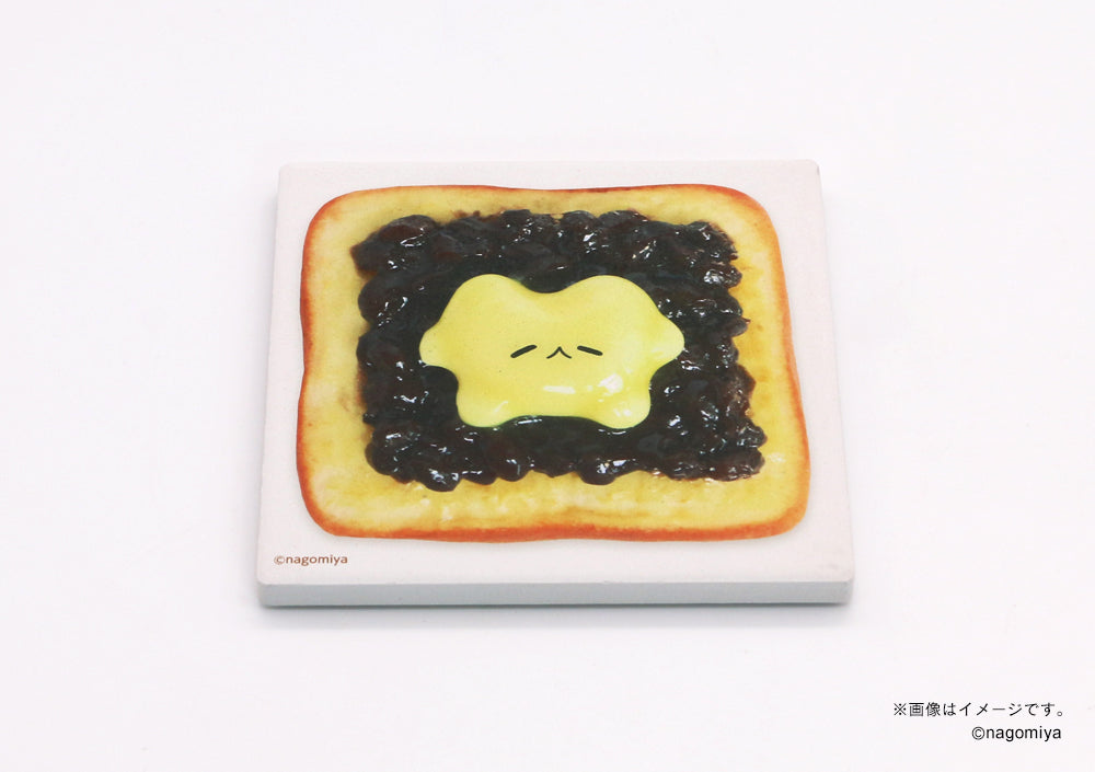 なごむような表情が特徴の「バターの罪ちゃん」シリーズの白雲石コースターの絵柄は、バタートースト、ジャムバタートースト、あんバタートースト、海苔バタートーストの全4種。コースターの用途としてはもちろん、お部屋に飾ってそのほのぼのとしたバターの表情に癒されること間違いなし!